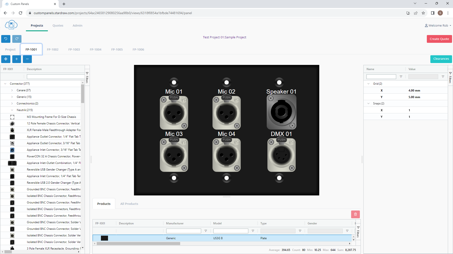 Create custom connection panels using a library of high quality symbols of panels and connectors, including Audio, Video, Lighting, Power and Networking connectors. Generate equipment lists, quotes and even output to a CNC mill to manufacture your bespoke panels.