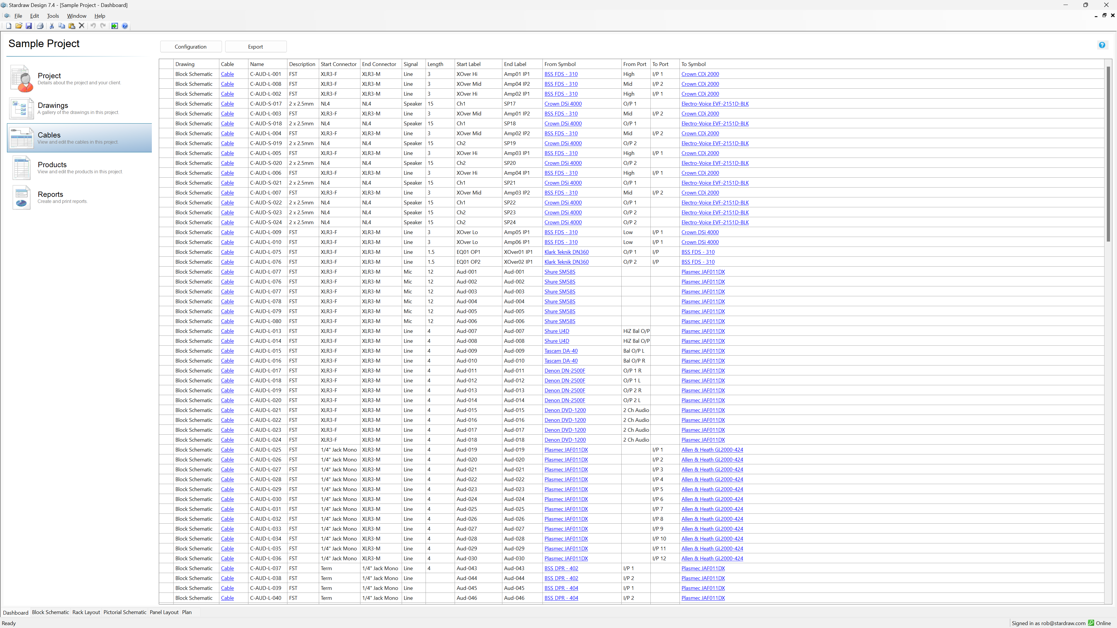 - Export as custom Cable Schedule.